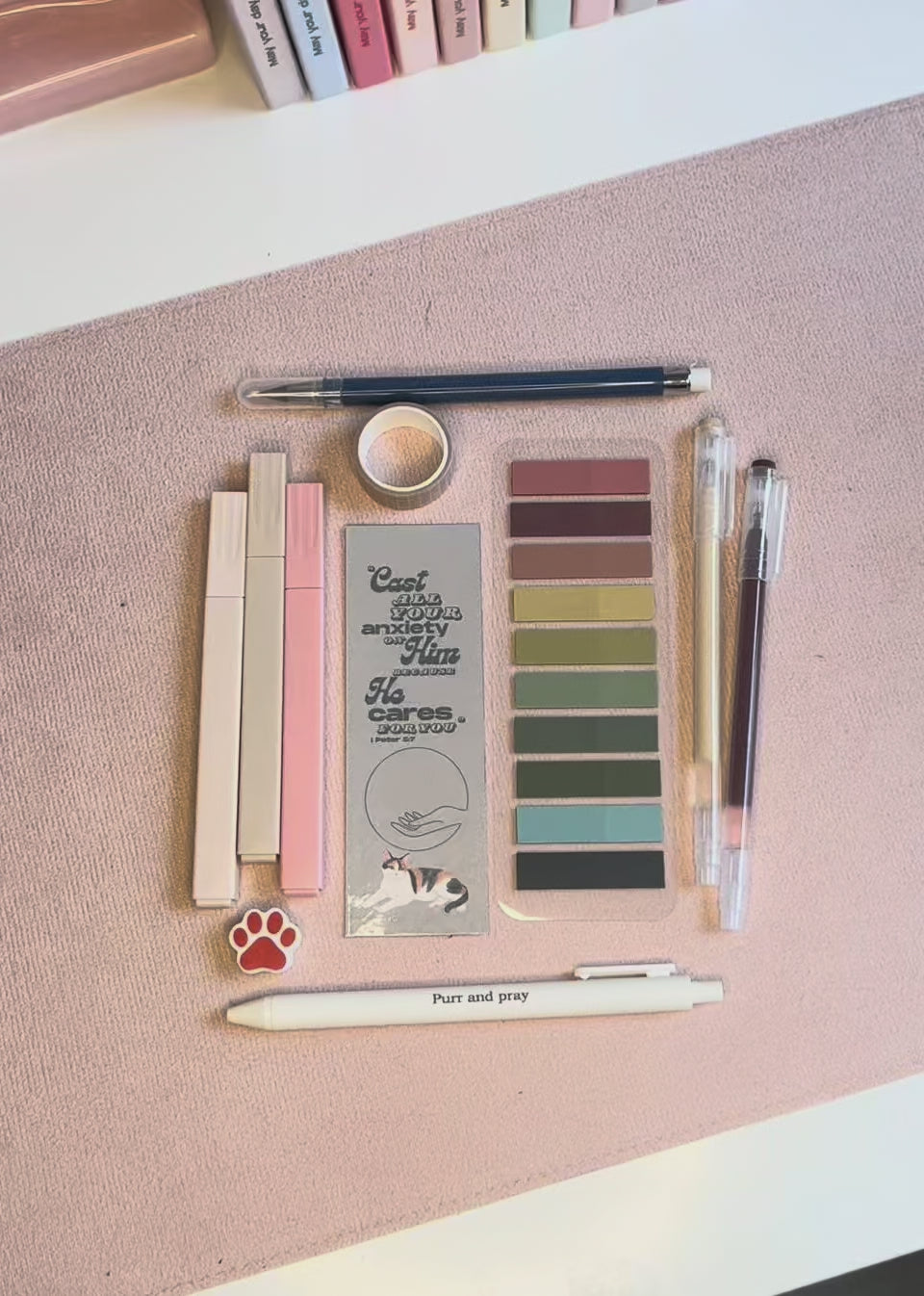 Yes! You can get a Chestnut Ember gift bundle which includes an A5 Bible verse journal, a matching pastel stationery kit, and a mini pack of Christian stickers featuring uplifting verses and cat illustrations.